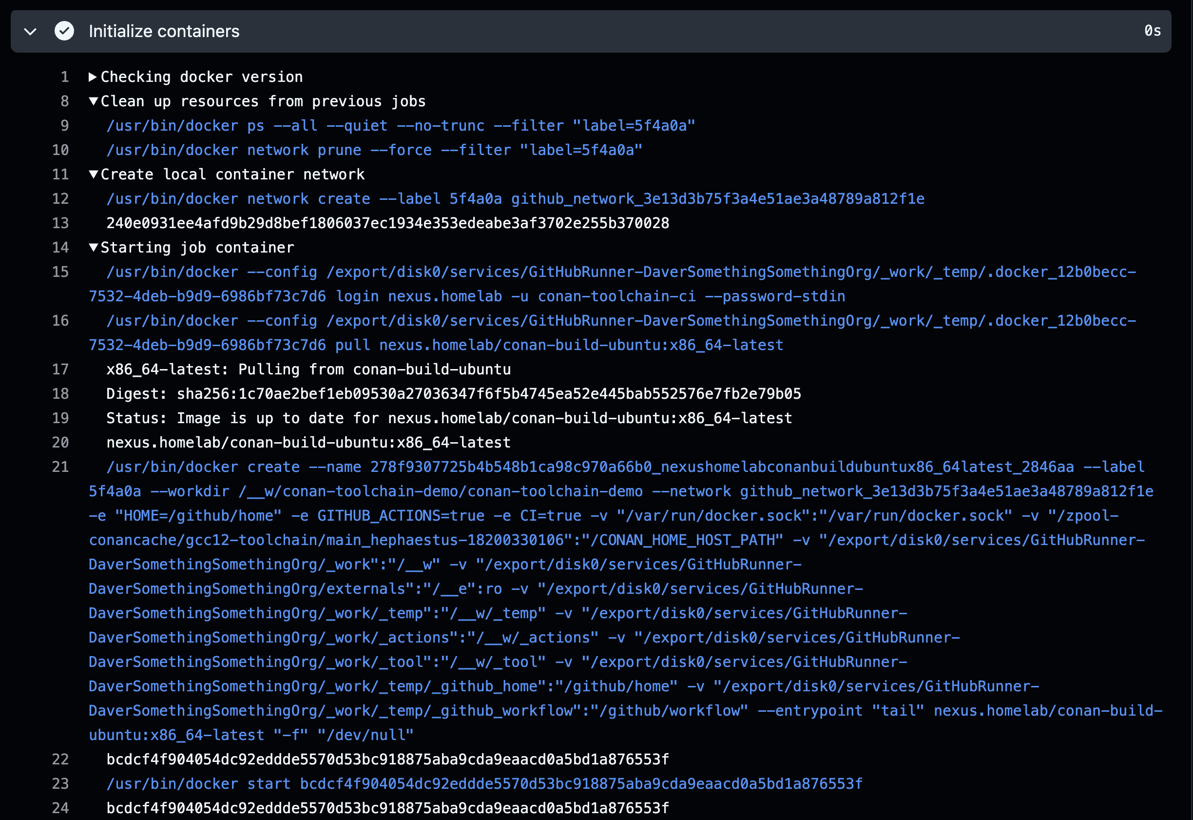 Example: Shell Runner "Initialize containers" workflow step